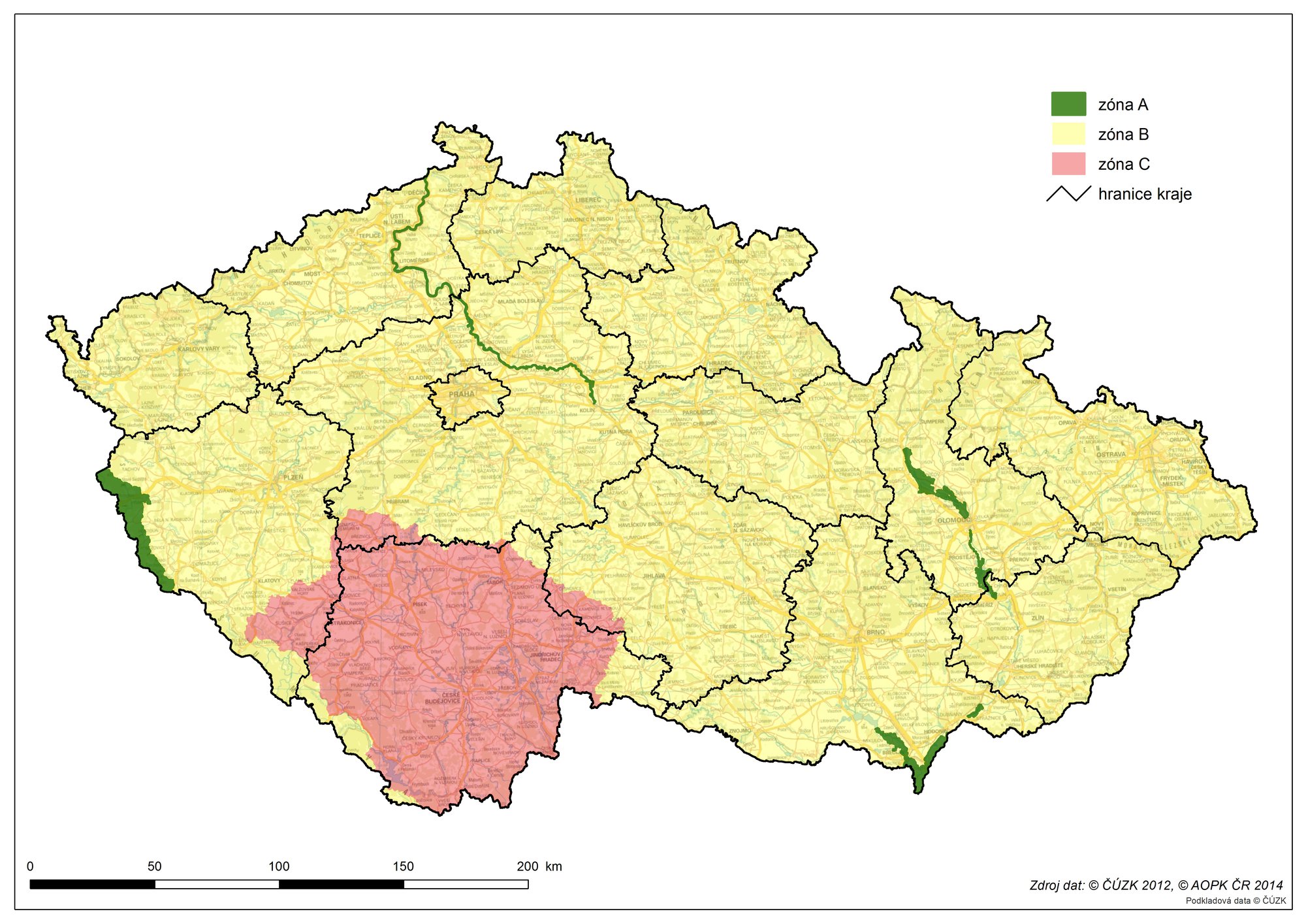 Mapa zonace diferencované ochrany bobra evropského v ČR